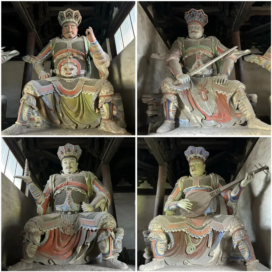 现在走进这座千年寺庙,首先来到的是山门,即天王殿,殿内明代彩塑的四大天王尤为吸睛。天王殿通常供奉四大天王,西方广目天王、南方增长天王、北方多闻天王和东方持国天王,主要职能就是守护寺院,后来逐渐演变成保佑“风调雨顺”的守护神。