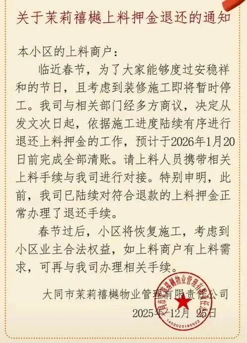 来源:大同市茉莉禧樾物业