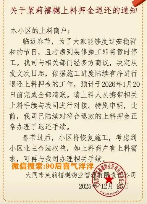 >大同:退费通知