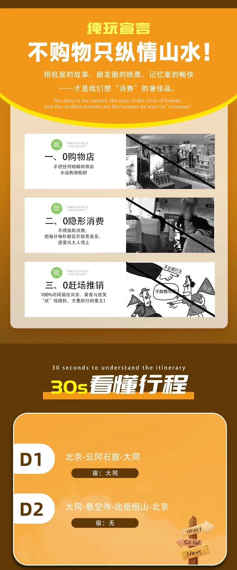 1)本活动属于户外旅行活动,纯玩,全程不进购物店,没有任何形式购物环节,领队也不作购物推荐,敬请谅解;同时本活动所有费用已明示(包括有可能您自愿自费的项目),无其它任何收费,请您仔细阅读费用包含和费用不含内容。