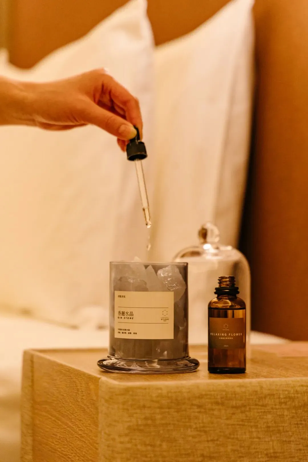 床头的侍寝香闻着真的很助眠,能感受到罗勒、柑橘、薰衣草的清香。经由天然喜马拉雅白水晶的扩散,蕴含自然能量,镇定安神。
