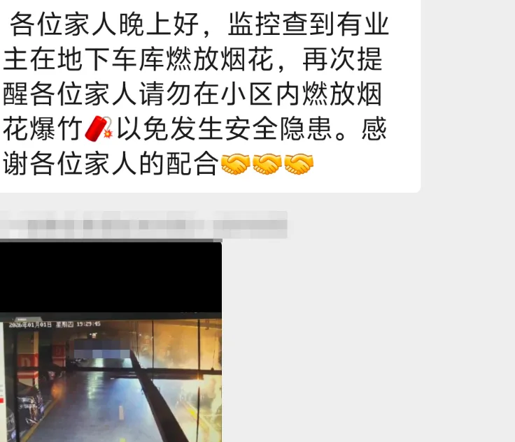 图片中确实看到地库有人放烟花,这样的行为太危险了,后果不堪设想!至于哪个小区就不说了,希望大家不要有这种行为。小区里面放烟花要注意安全,听从物业安排!