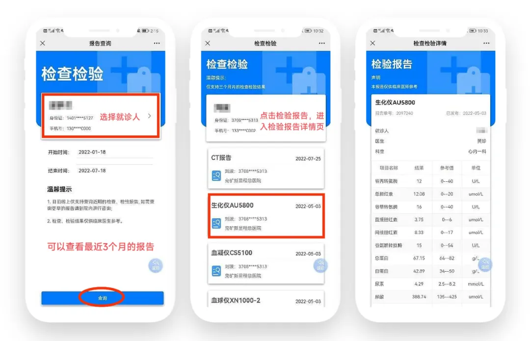 (目前我院只支持检验报告查询)