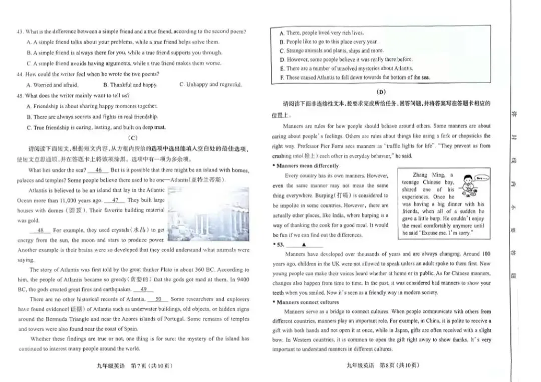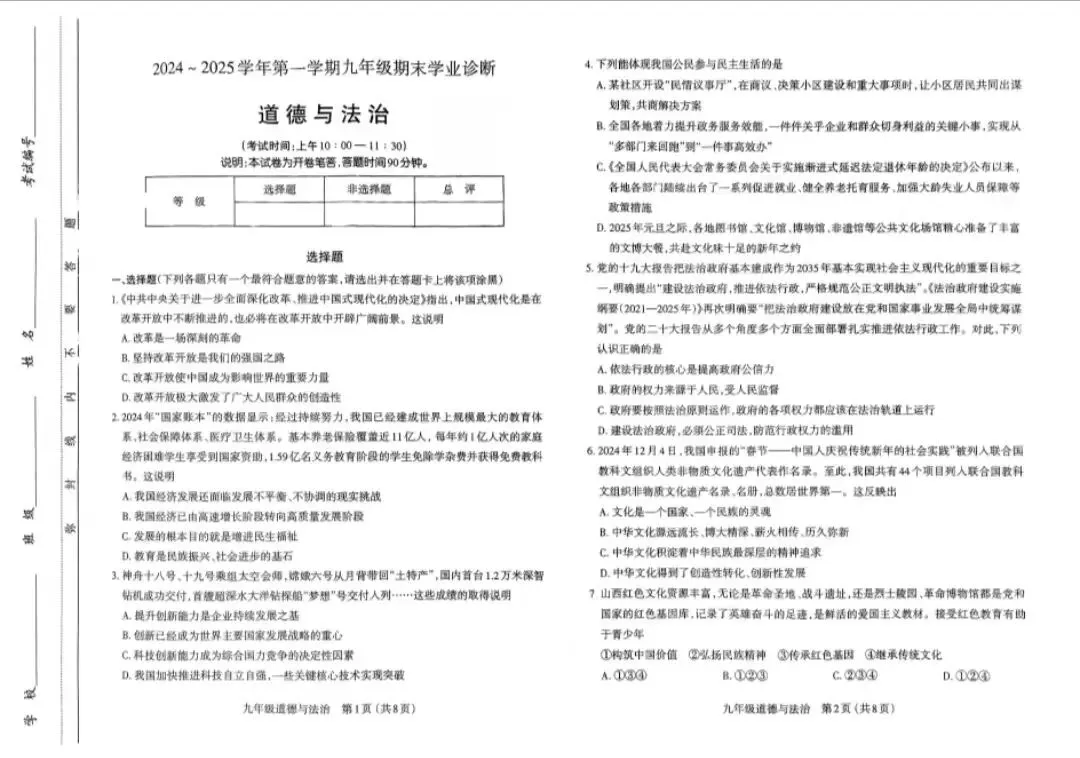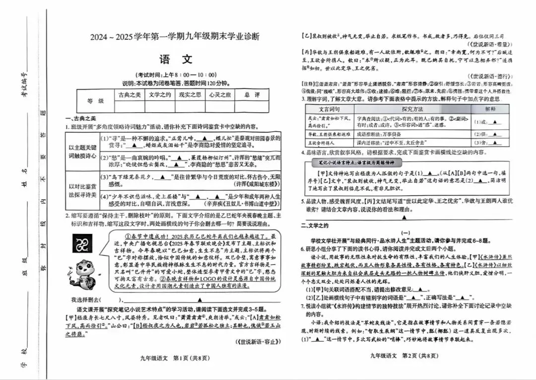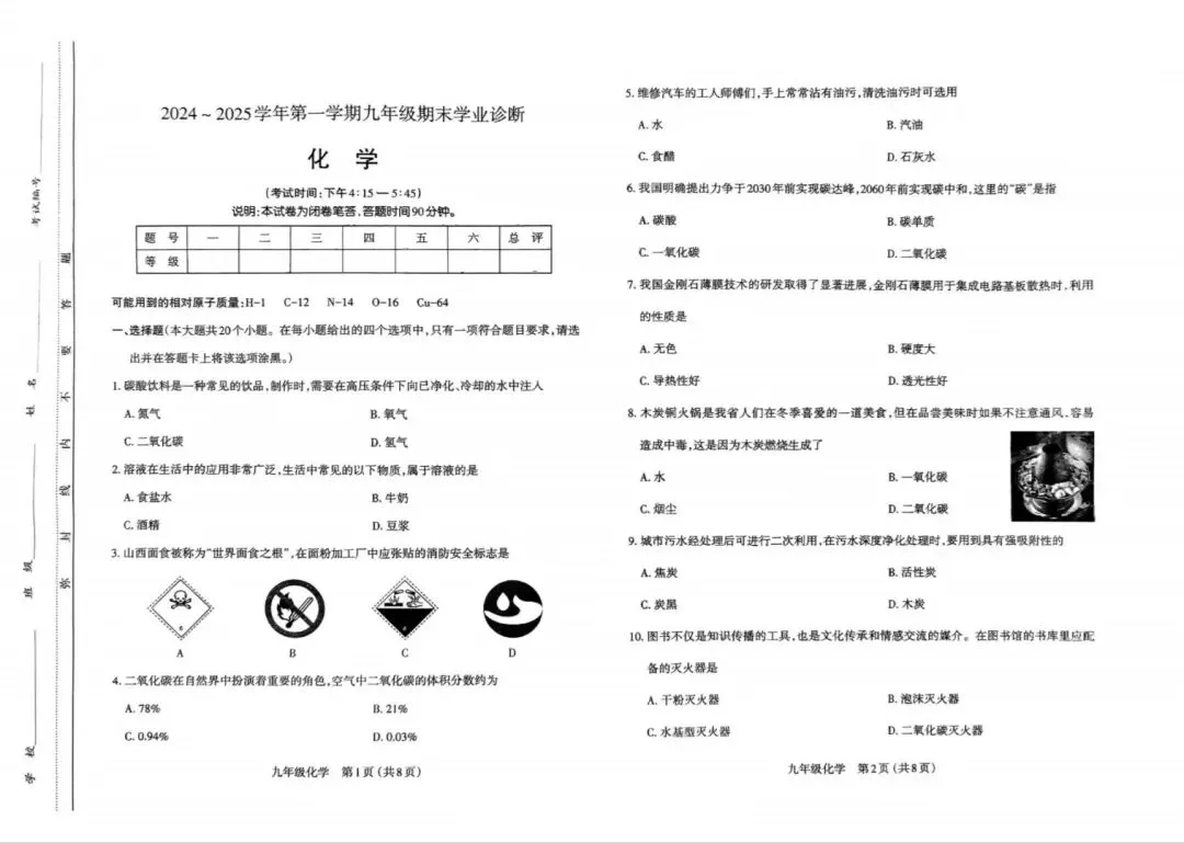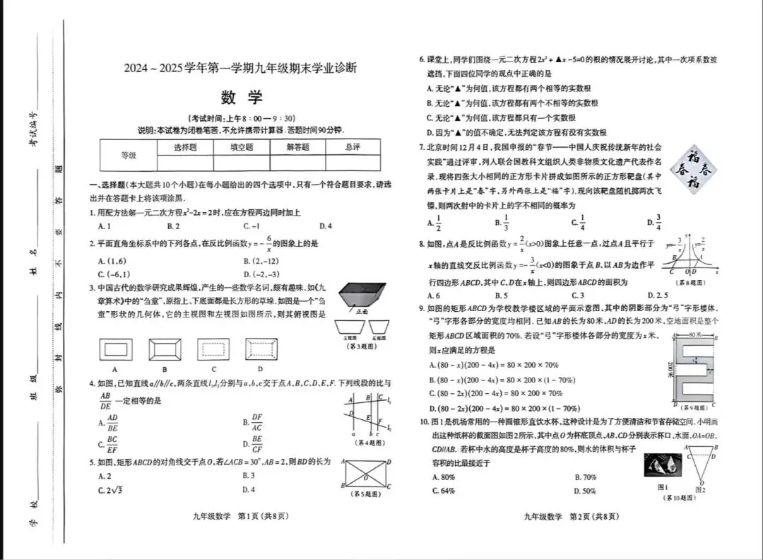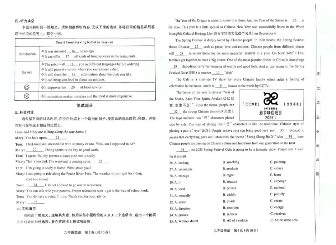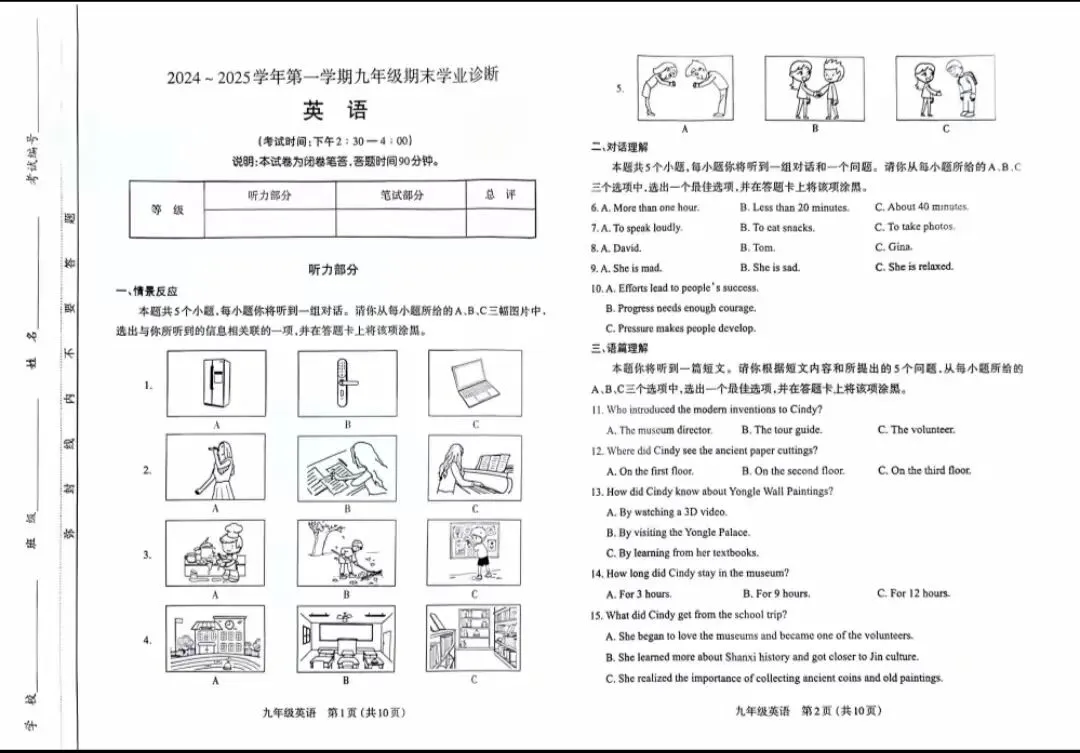 太原市志达中学2025—2026九年级第一学期12月测试卷