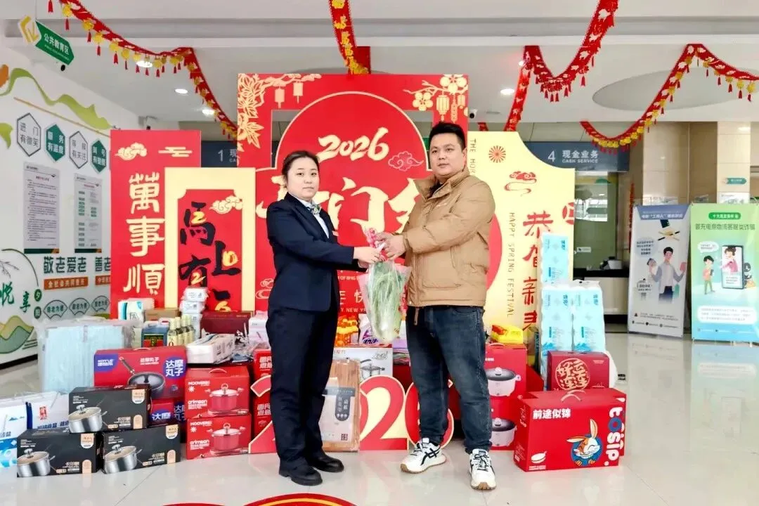 长治农商银行大庆路支行在厅堂开展“送白菜·纳百财”主题回馈活动,向办理业务的客户赠送新鲜白菜,寓意“百财俱来”。现场氛围温馨,吸引了众多客户参与。工作人员在传递祝福的同时,也积极普及金融知识、讲解惠民政策,并贴心提醒老年客户注意冬季健康,让客户在收获实惠的同时,感受到银行的温度与关怀。(郭韶波)