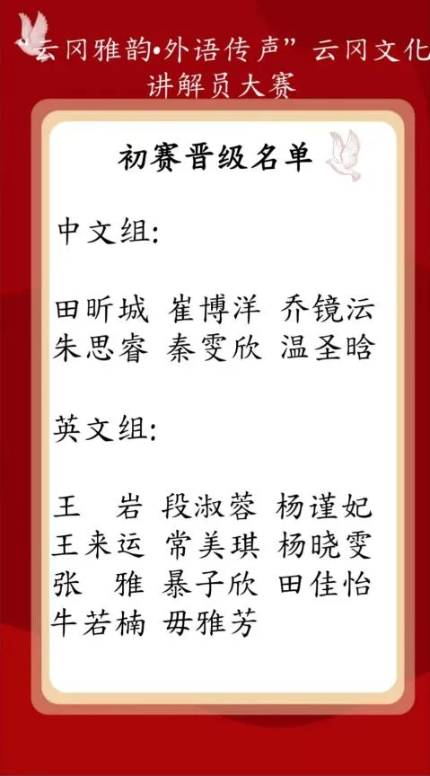 当语言遇见云冈,既是文化的跨界,更是文明的对话。此次大赛是学院“语言+文化”育人的创新实践,展现了同大学子怀揣着一颗赤诚热爱之心,以自身绵薄力量传承千年文化之魂的精神气质。讲好中国故事,用双语传播云冈文化,同大学子永远在路上。