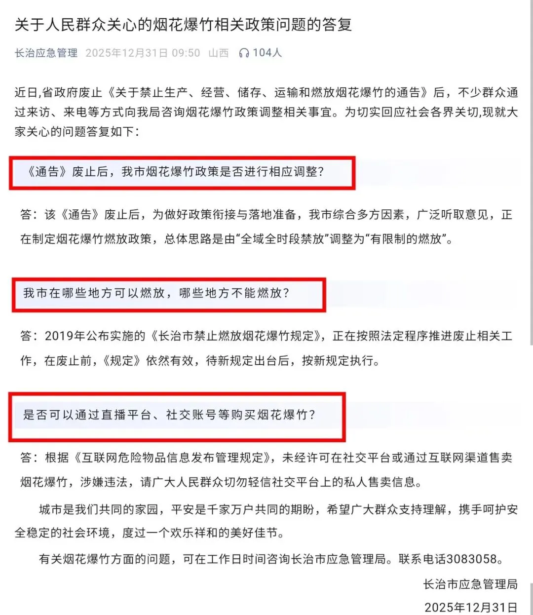 事关沁源!长治市官方答复烟花爆竹相关问题