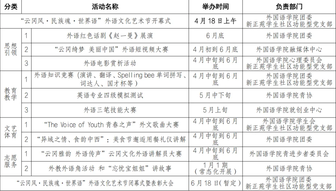 1.各项活动通知将在学生工作部、共青团山西大同大学委员会、外国语学院微信公众号(见附件 2)进行公布,请各基层党委、学院团委积极发动和组织学生参与。
