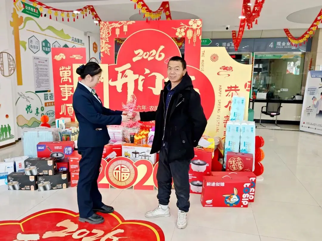 元旦期间,北董分理处开展“进门有惊喜”主题活动,为到店客户送上寓意“百财”与“平安”的白菜、苹果。活动现场充满欢声笑语,客户在收获节日祝福的同时,也体验了工作人员热情周到的金融服务。此次活动不仅增添了新年氛围,也进一步加深了与客户之间的情感联结。(焦娜)