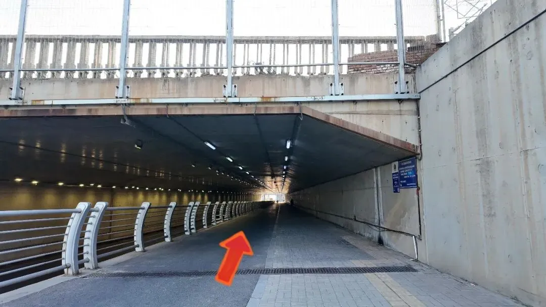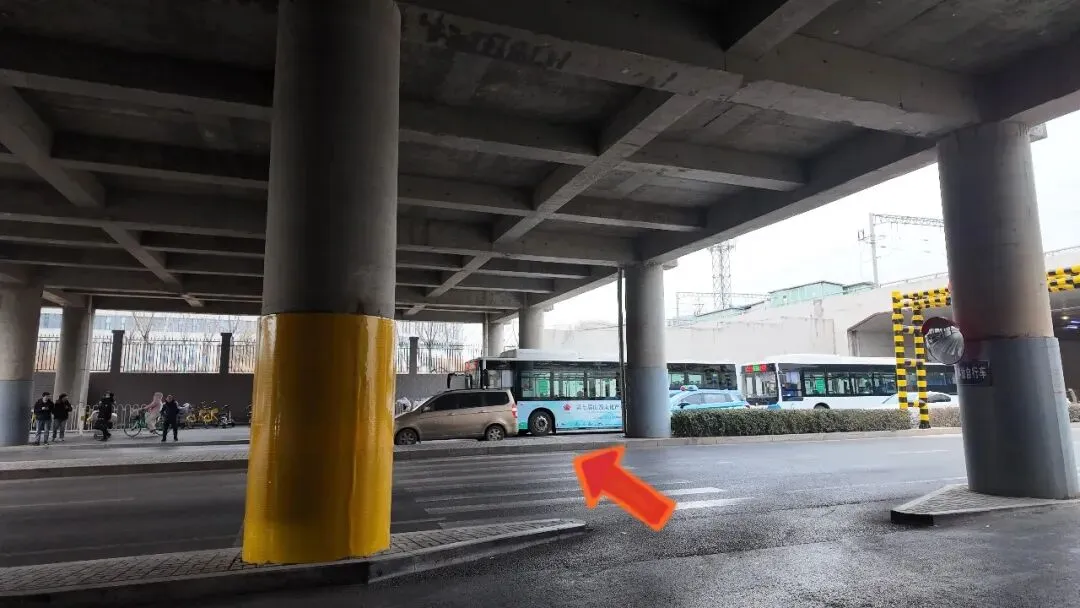 从西到达口出去,沿斑马线到达站北街北侧后继续向西