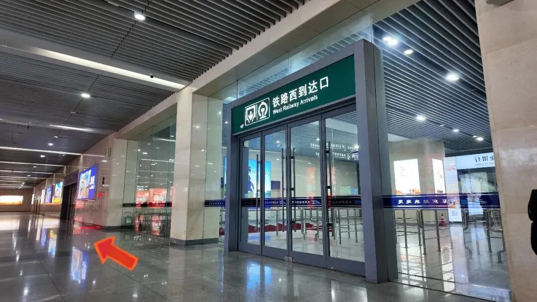 右转站内步行直行约3分钟到达西到达口