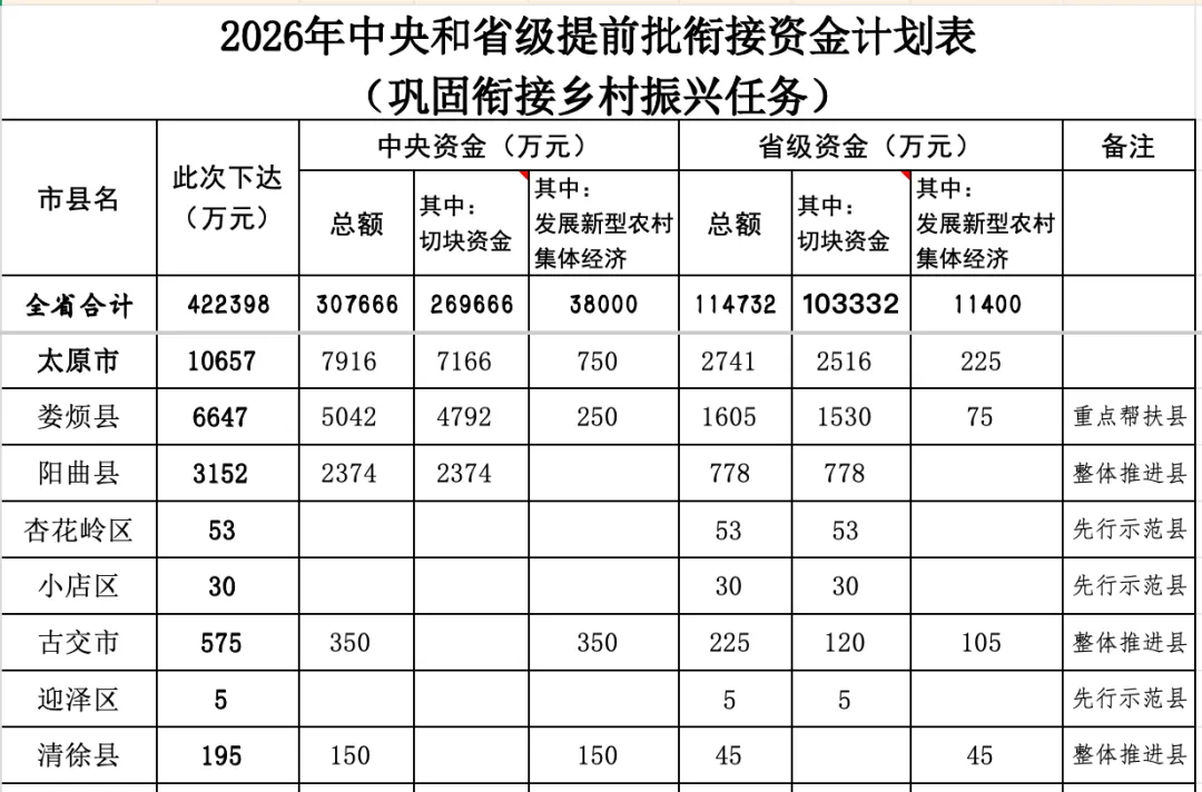 关于下达2026年中央和省级提前批财政衔接推进乡村振兴补助资金计划的通知》,其中