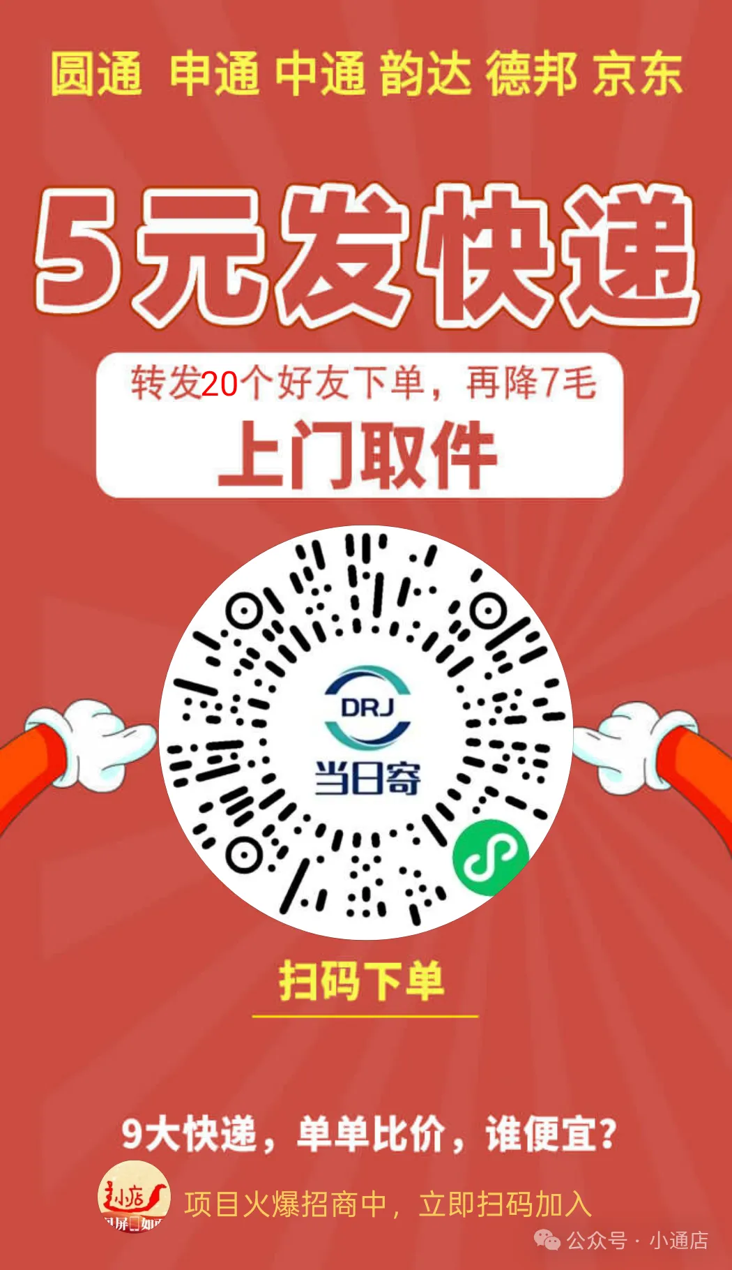 寄快递福利,5元寄快递!