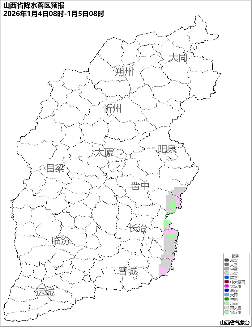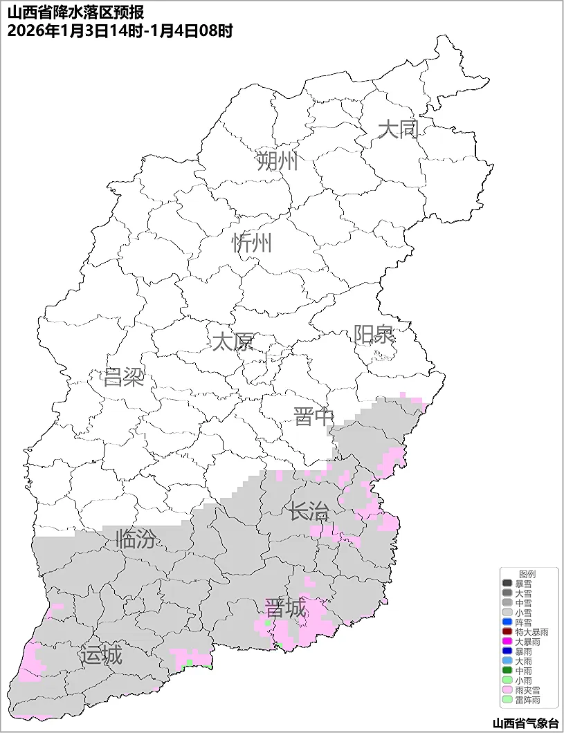 今天下午到夜间:全省晴天转多云,晋中东部、临汾、运城、长治、晋城等地的部分地区有小雪;北部局部和中南部部分地区有轻到中度霾或轻雾,南部局部地区有大雾。