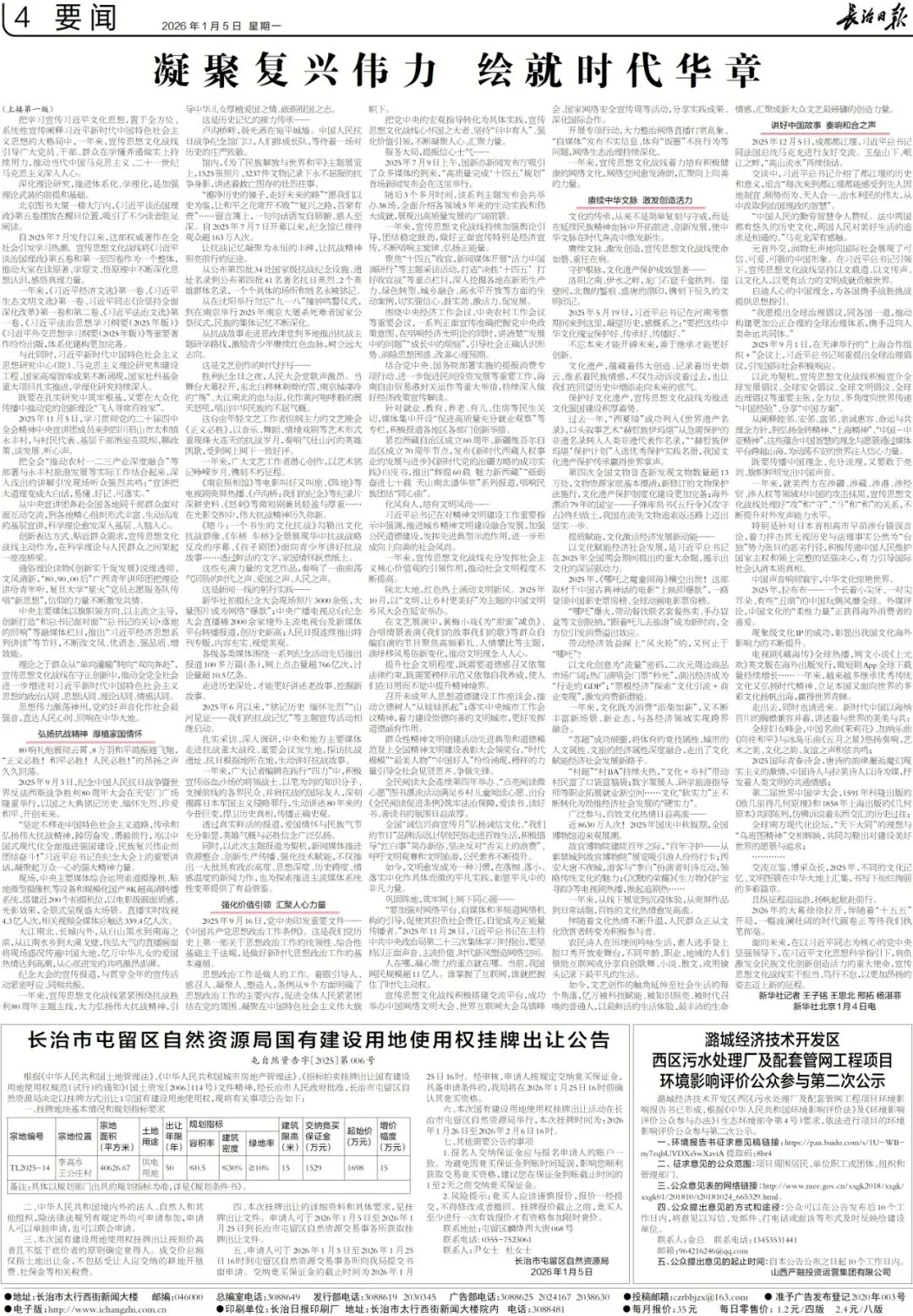 《长治日报》2026年1月5日版面速览