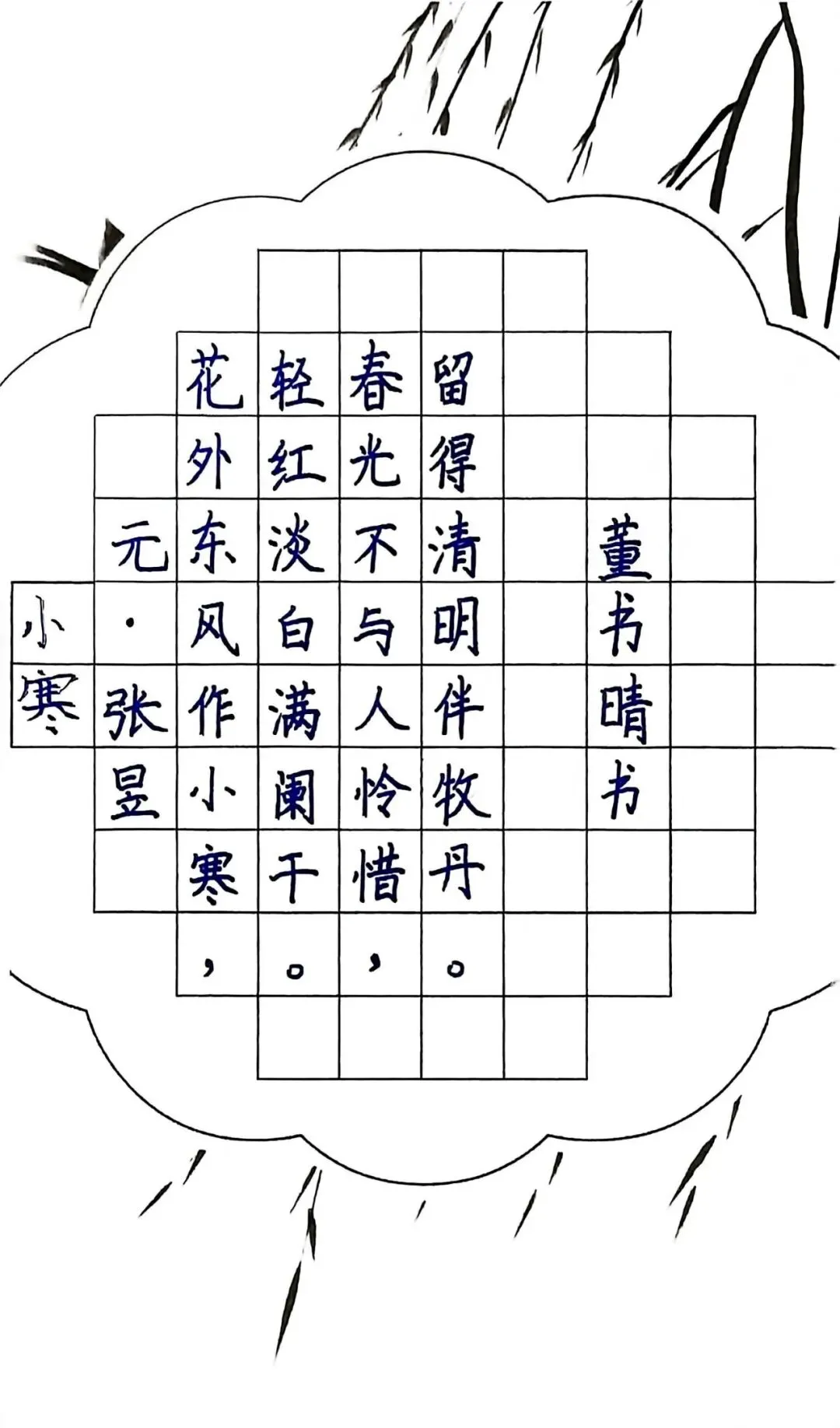 笔墨飘香处,经典永流传。同学们以笔为媒,潜心书写小寒相关的诗词佳句。软笔书法作品笔锋婉转、气韵生动,楷书端正秀丽,行书潇洒飘逸;硬笔书法作品字迹工整、笔画清晰,一笔一划间尽显认真。“小寒连大吕,欢鹊垒新巢”“冻云宵遍岭,素雪晓凝华”,这些优美的诗句在同学们的笔下,化作冬日里一抹雅致的风景,也让大家在书写中领略了中华诗词与书法艺术的双重魅力。