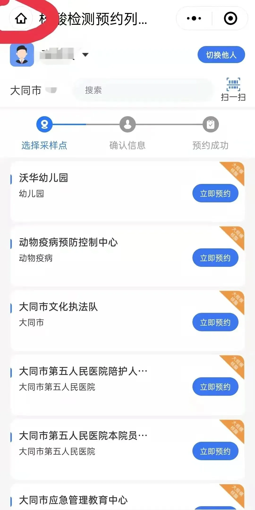 4月23日,大同市在平城区、云冈区开展预防性区域核酸检测工作。因当天有大量居民同时进行核酸检测,为防止出现网络卡顿等情况,4月20日,大同市疫情防控办发出紧急提示,为使核酸检测高效有序开展,建议广大居民提前通过微信进行核酸检测预约,现场采样时提前出示核酸采样登记码。