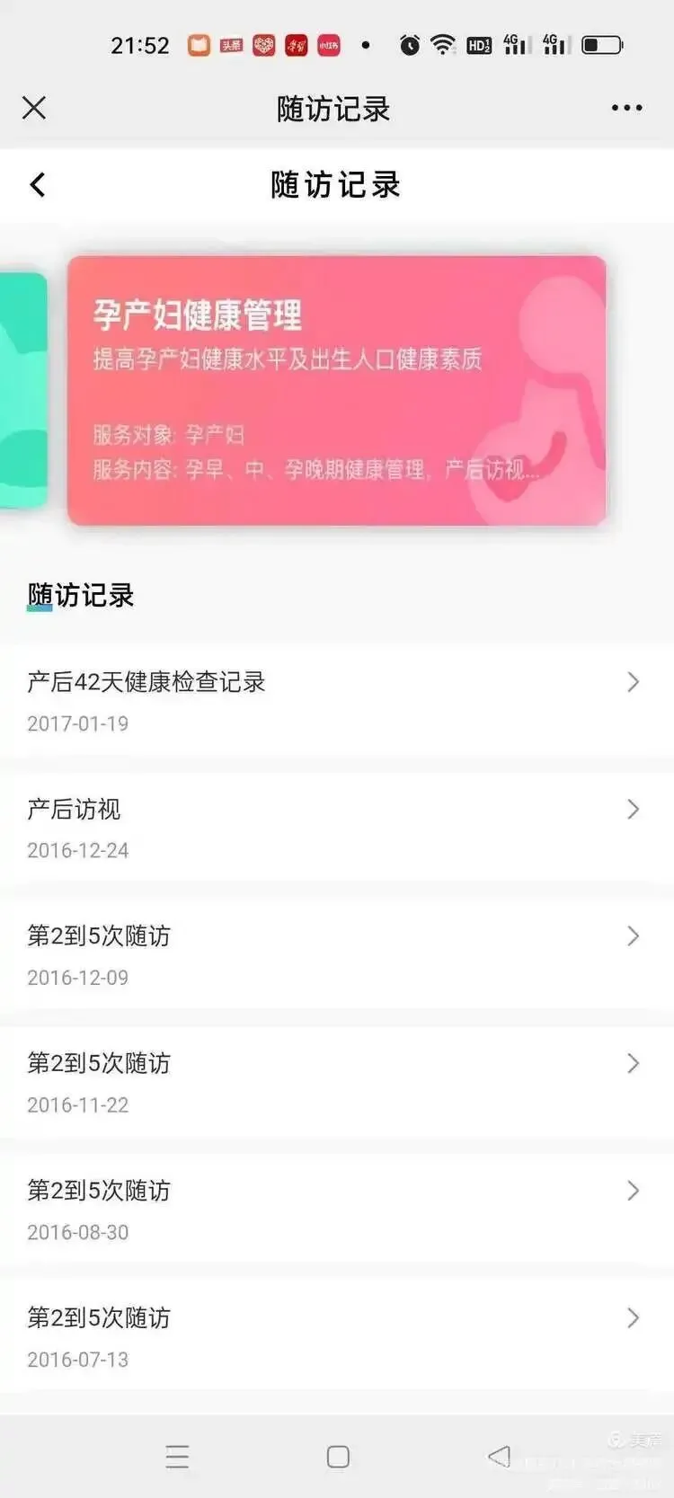 4,慢性病患者、0-6 岁儿童、孕产妇健康管理等随访记录:6,您的病史记录、就诊记录、处方记录及住院记录如下图所示: