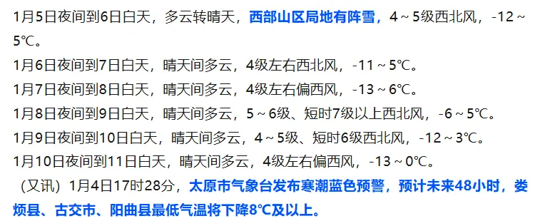 小寒时处二三九,天寒地冻冷到抖。”1月5日迎来冬季的第5个节气——小寒。根据市气象台最新预报,本周我市以晴天间多云天气为主,冷空气活动频繁。其中1月5日至6日、8日至9日有大风天气。具体预报如下: