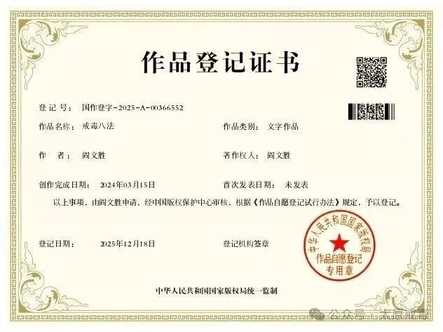 近日,太原市戒毒所自主研发的《戒毒八法》获得国家版权局作品登记证书。