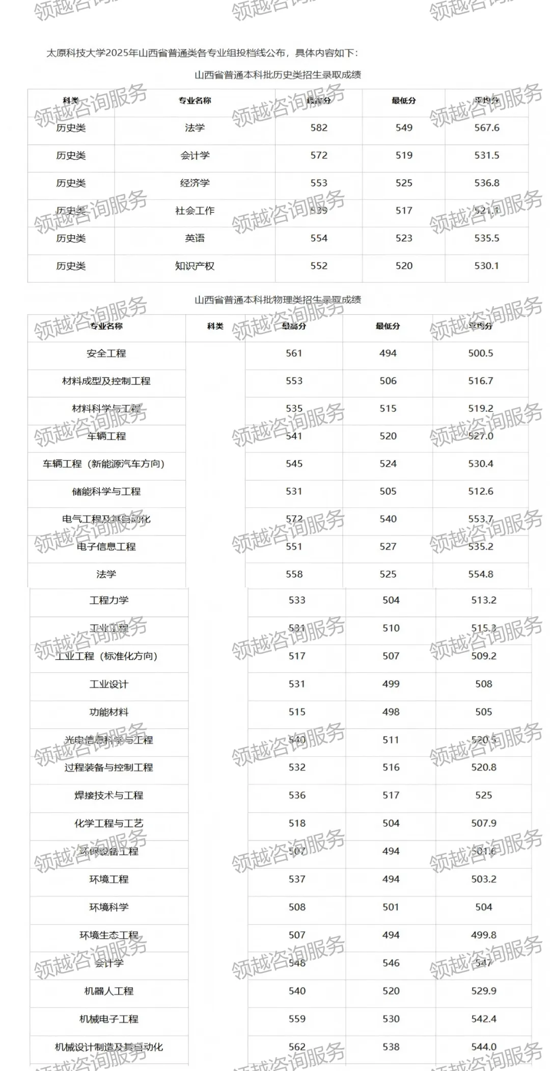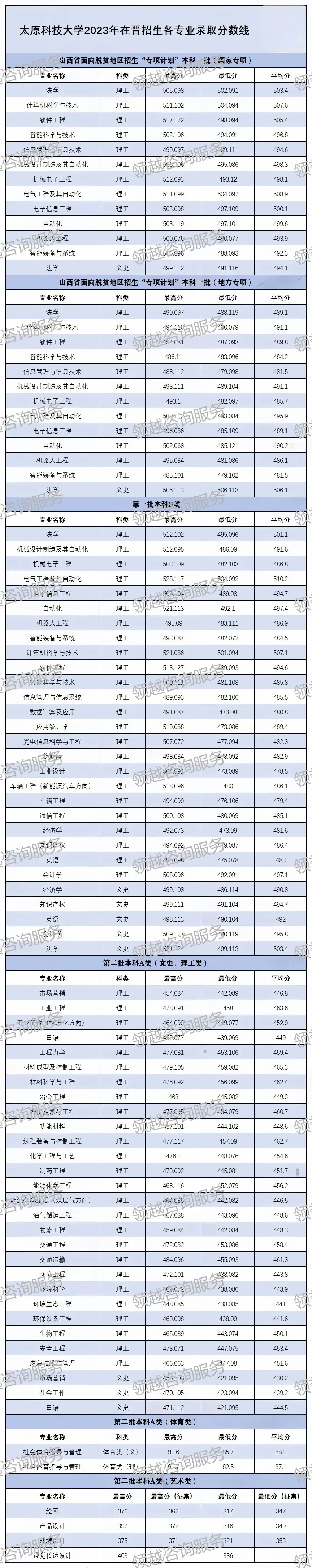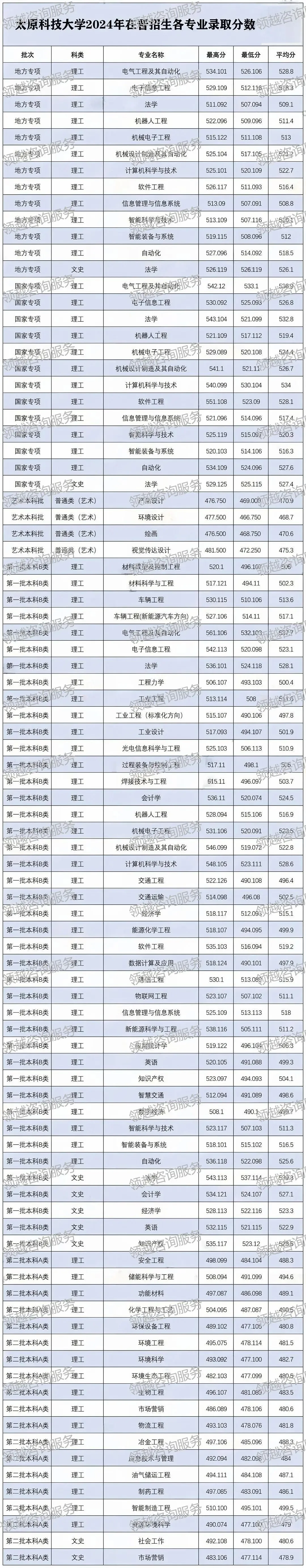 >太原科技大学2023-2025年各专业录取分数线(山西省)