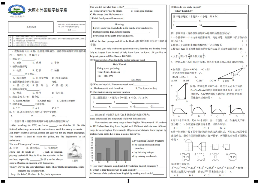 >太原市外国语学校小升初真题一