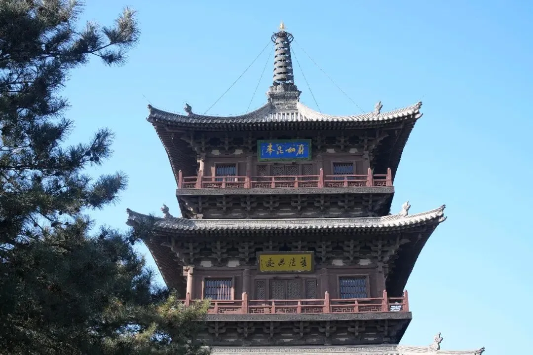 华严宝塔重建于2010年,塔身为纯木榫卯结构,无铁钉加固,为全国第二大方形木塔(仅次于应县木塔)。外观三层,内部含两个暗层,共五层,体现辽金建筑智慧。