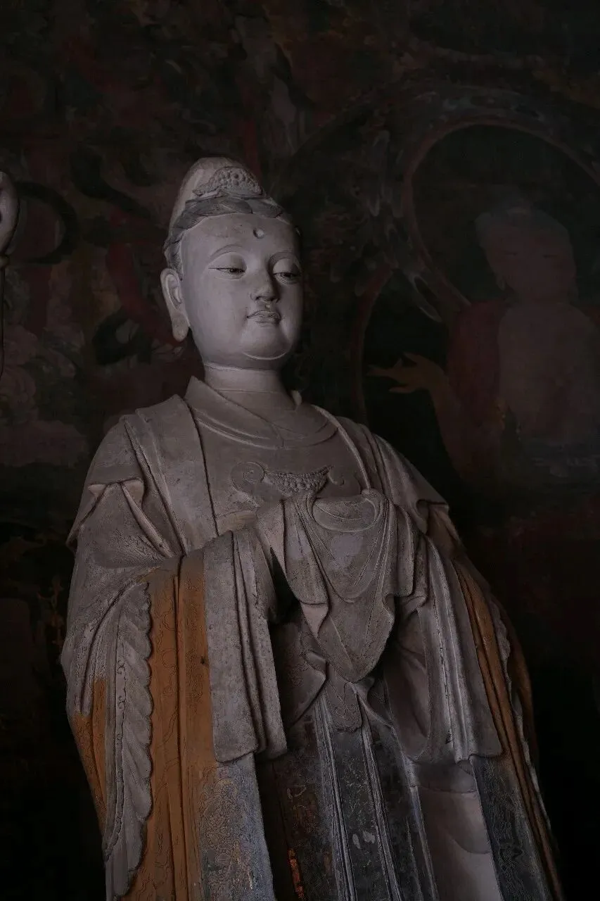 在薄伽教藏殿,观赏了辽代彩塑中被称为东方维纳斯的合掌露齿菩萨。