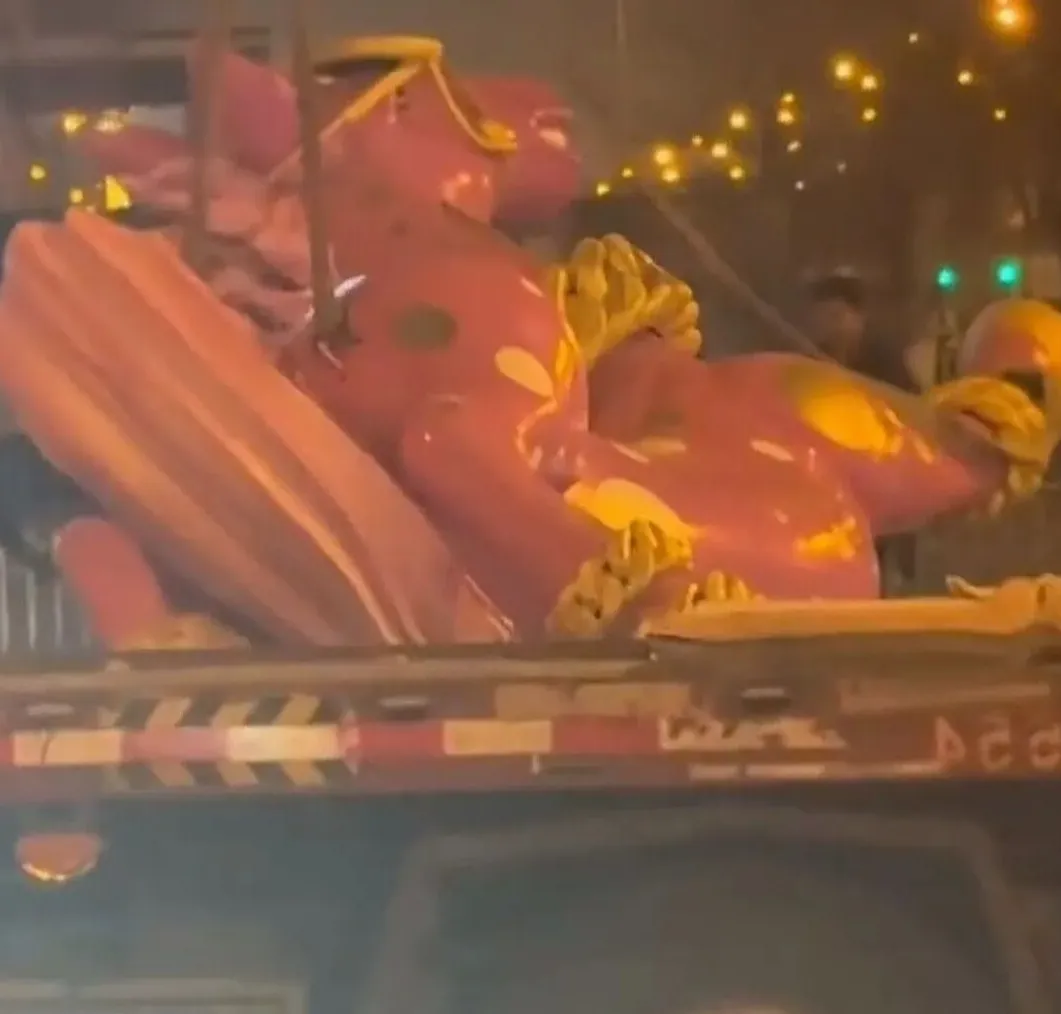 1月4日,有网友发现该雕塑已在夜间被悄然移除,原位置仅留下底座痕迹。面对公众质疑,商场客服回应称:因“不可抗力因素”决定拆除,认为继续摆放“可能造成不良影响”。