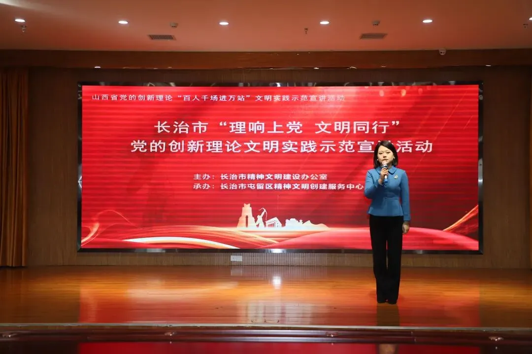 1月6日,由长治市精神文明建设办公室主办、长治市屯留区精神文明创建服务中心承办的山西省党的创新理论“百人千场进万站”文明实践示范宣讲活动暨长治市“理响上党 文明同行”党的创新理论文明实践示范宣讲活动,在屯留区会堂隆重举行。活动中,屯留区、长子县、壶关县的宣讲员及长治日报社特邀宣讲员,围绕红色文化、非遗传承、乡村振兴、生态治理等主题展开宣讲,让党的创新理论在基层落地生根。