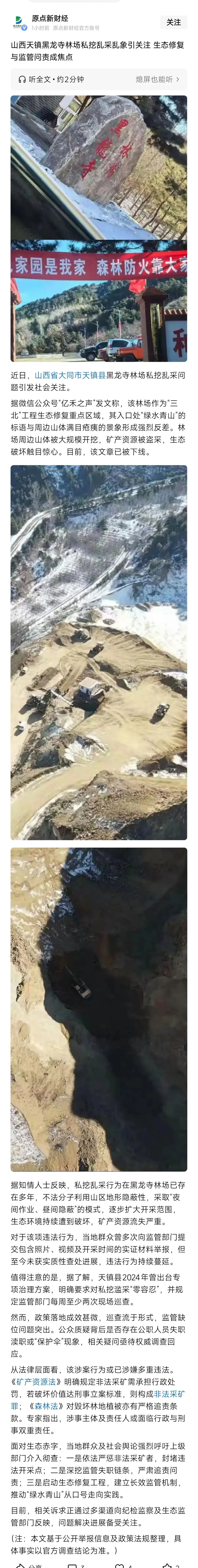 >媒体曝光山西大同天镇黑龙寺私挖乱采
