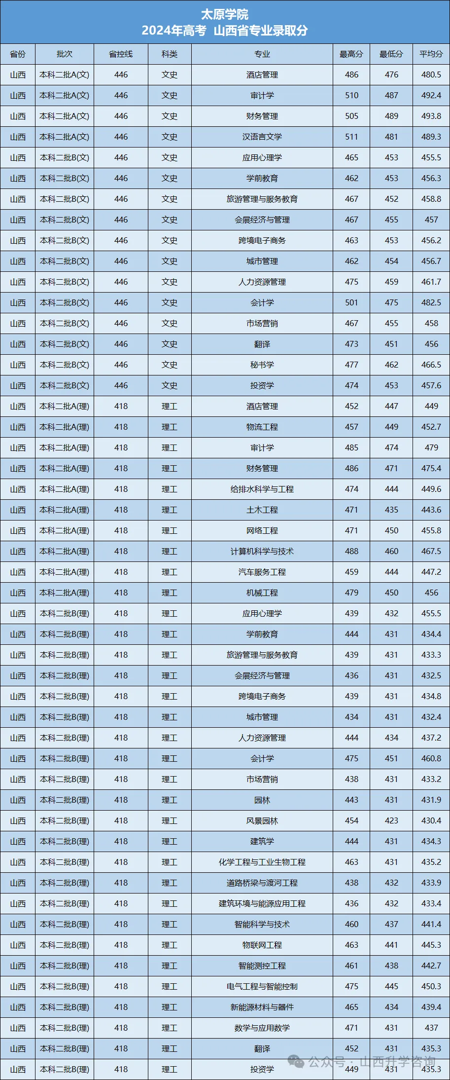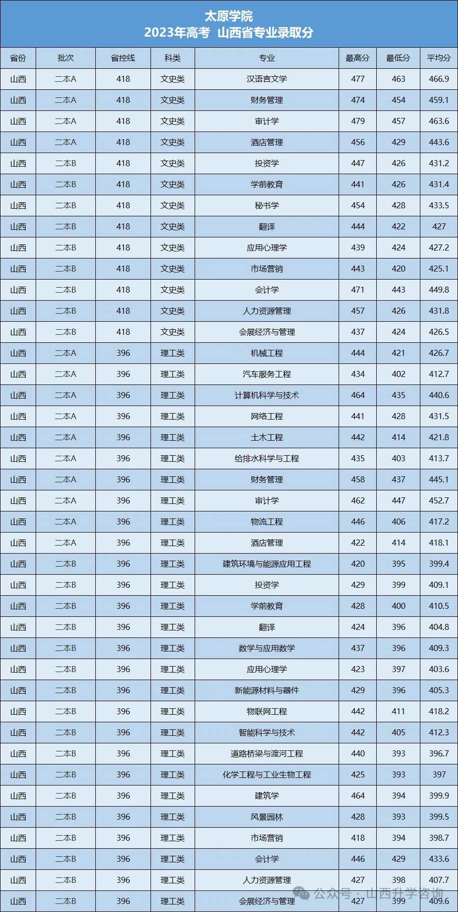 太原学院前身为2002年12月由原太原大学、太原师范学校、太原市教育学院合并而成的新太原大学。2013年4月,经教育部批准升格为全日制综合类普通本科院校,更名为太原学院。学院于2017年获得学士学位授予权单位,2022年成为首批山西省应用型本科高校建设单位。先后获批山西省政府“1331工程”优势特色学科建设项目,山西省政府“1331工程”“大数据智能诊疗产业学院提质增效计划建设项目”等。