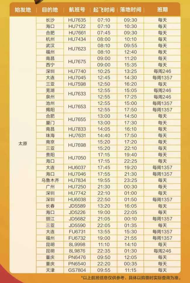 具体航班信息以实际查询为准,后续海南航空将根据市场需求适时增投运力,旅客可通过海南航空官方网站、APP、客服热线95339以及各大正规机票销售平台查询及预订。
