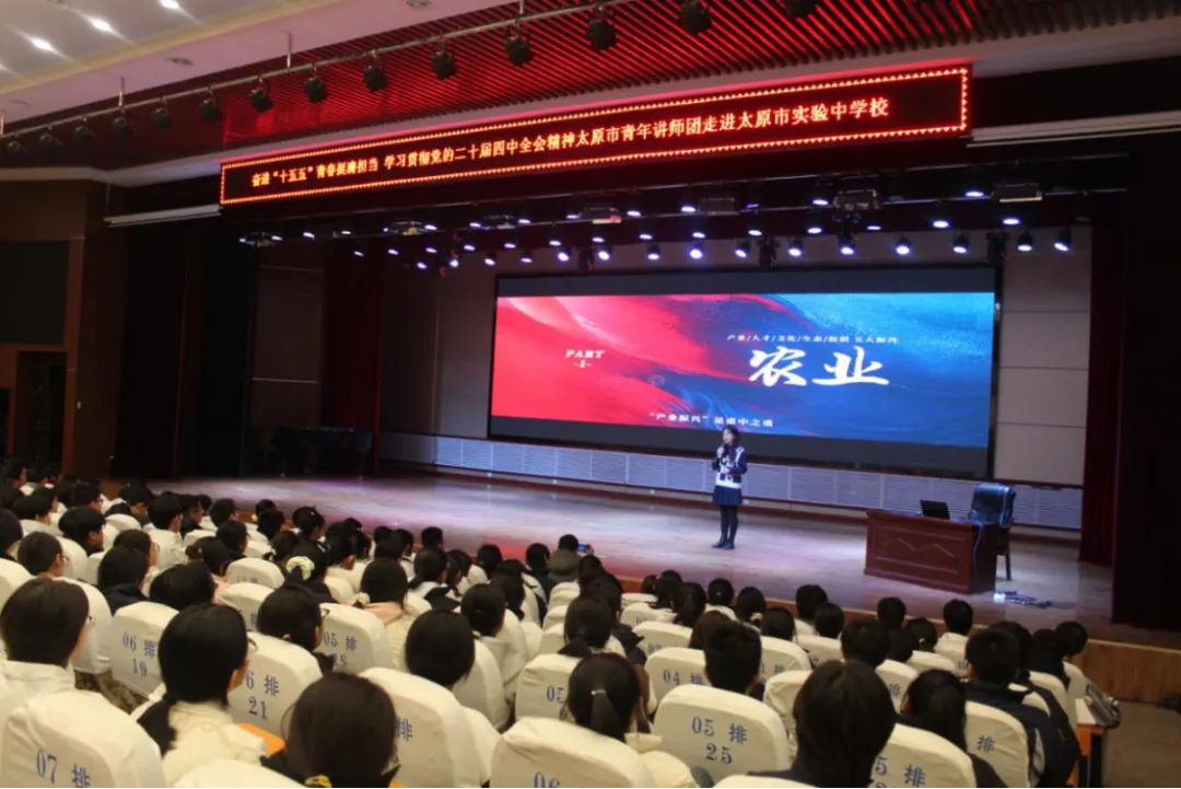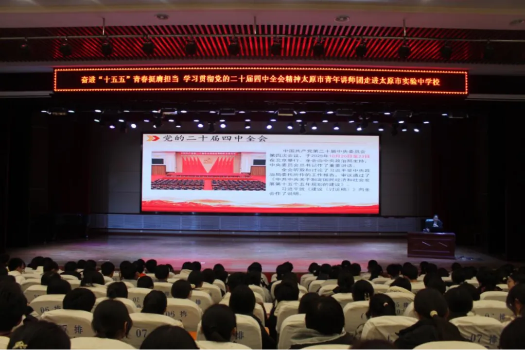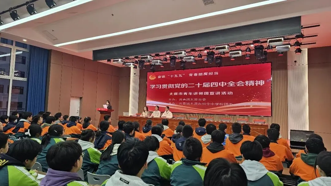 1月5日,太原市青年讲师团走进太原市实验中学校,4名青年宣讲团成员与团员们交流分享党的二十届四中全会精神体会和感悟,太原市实验中学校200多名团员参加了此次宣讲活动。