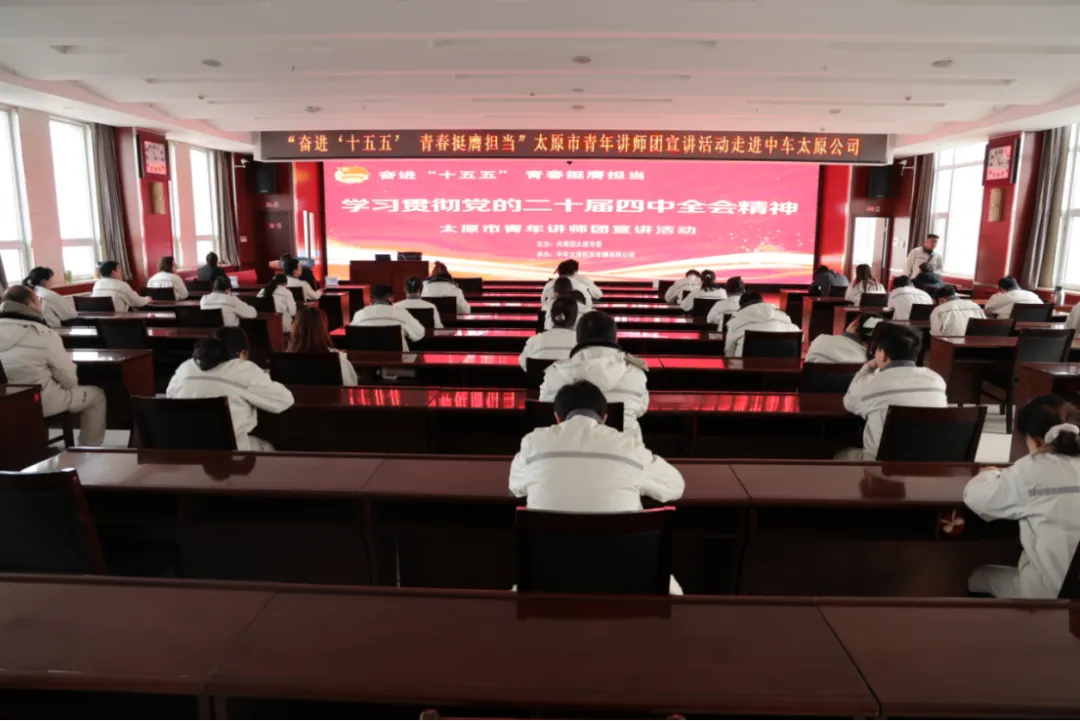 12月31日,学习贯彻党的二十届四中全会精神太原市青年讲师团宣讲活动在中车太原机车车辆有限公司举行。4位青年宣讲团成员走进中车与青年们交流党的二十届四中全会精神学习体会和感悟。中车太原机车车辆有限公司50余名团员青年参加了此次宣讲活动。