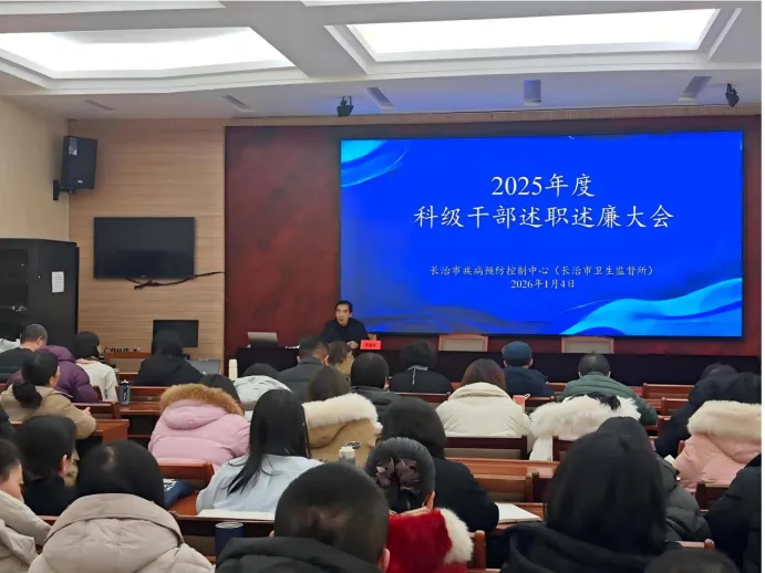 1月4日至5日,市疾控中心在长邯路办公区二楼会议室组织召开2025年度科级干部述职述廉大会。中心党委书记、主任原超普出席会议并讲话,中心班子成员及全体干部职工参会。