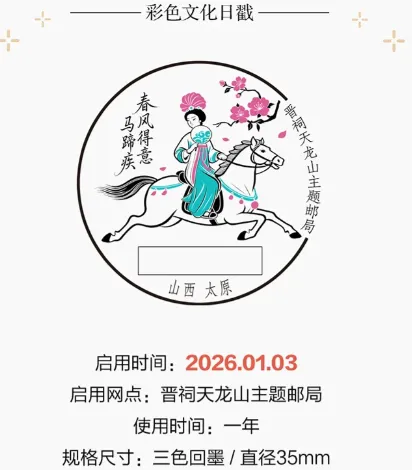 1月3日,在太原晋祠,太原邮政马年彩戳第四枚正式面世。