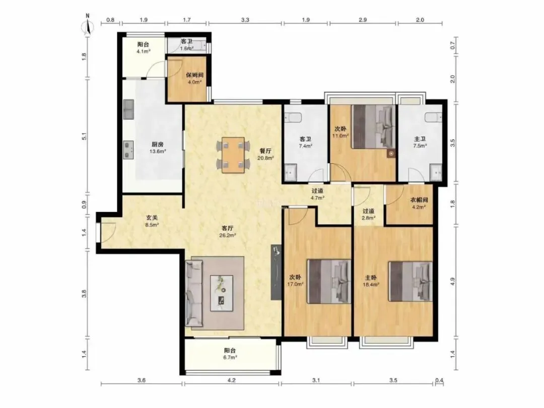 户型:3房2厅2卫1阳台 | 南北通透板式房