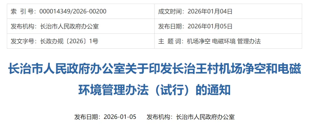 《长治王村机场净空和电磁环境管理办法(试行)》已经市政府常务会议审议通过,现印发给你们,请认真贯彻落实。