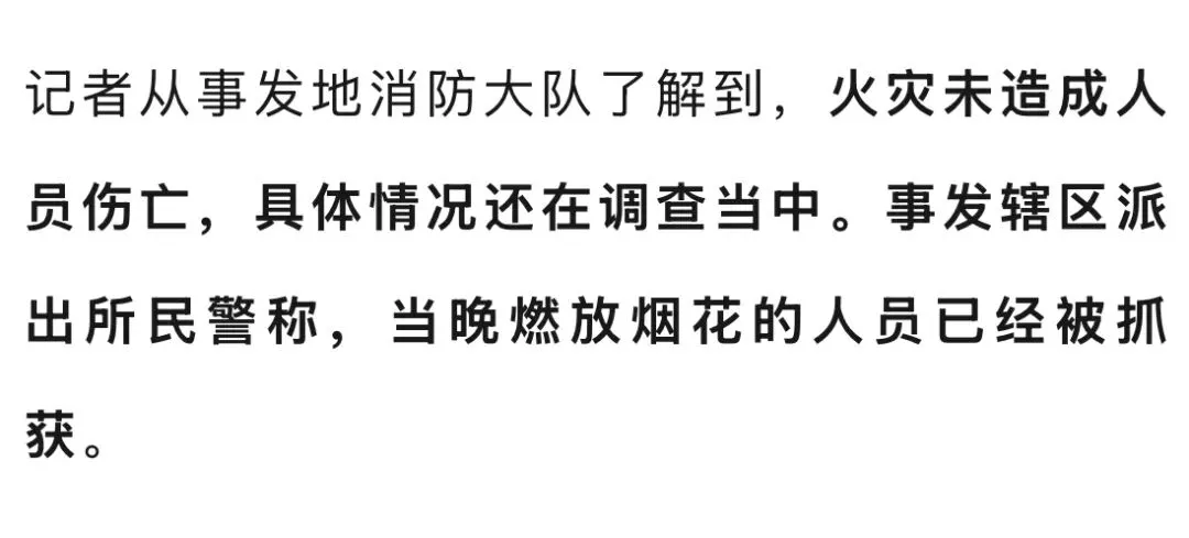近日,有网友发视频称,1月5日夜间,在太原长风东街一小区西面的围挡外,有人燃放烟花爆竹导致大火发生,并引燃了新能源汽车充电设备。7日上午,太原迎泽区应急管理局工作人员告诉记者,当天确实有人因燃放烟花爆竹引燃杂草导致大火发生,并将尚未安装的充电桩烧毁。火灾发生后,消防部门赶到现场,一个小时内将大火扑灭,没有人员伤亡。当地警方回应记者称,燃放烟花者已被抓获。