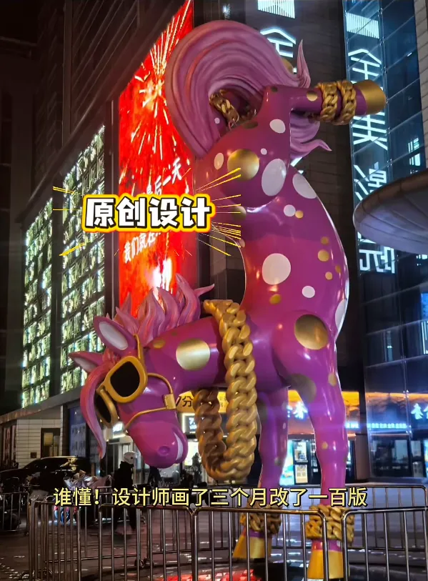 2026年元旦,太原北美新天地商场门口的粉色倒立马雕塑横空出世。戴着墨镜、四蹄朝天的搞怪造型,配上"马到成功"的吉祥寓意,本想借着马年东风成为网红打卡地,却没料到72小时后就因一句方言梗紧急下架,沦为全网热议的笑谈。