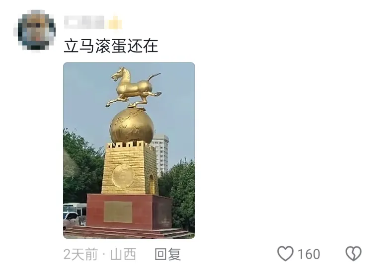 更有网友拿出"马踏飞燕"的案例对比:同样曾被调侃"立马滚蛋",甘肃文旅却顺势推出文创产品,将调侃转化为传播力,成为传统文化破圈的典范。