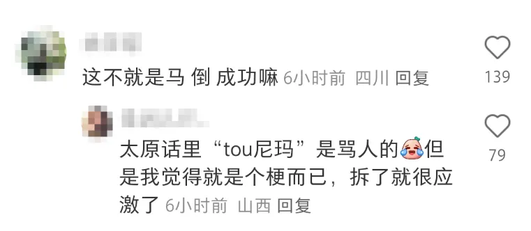 有本地网友一语道破关键:"马头朝下,这不就是'头逆'吗?加上马,就是'头逆马'啊!"在太原方言里,"头逆马"是带着粗俗意味的骂人话,这个解读一经抛出,迅速在本地社交圈炸锅。