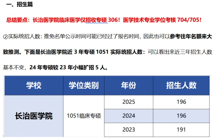 总结要点:长治医学院临床医学仅招收专硕306!医学技术专业学位考核704医学技术综合!