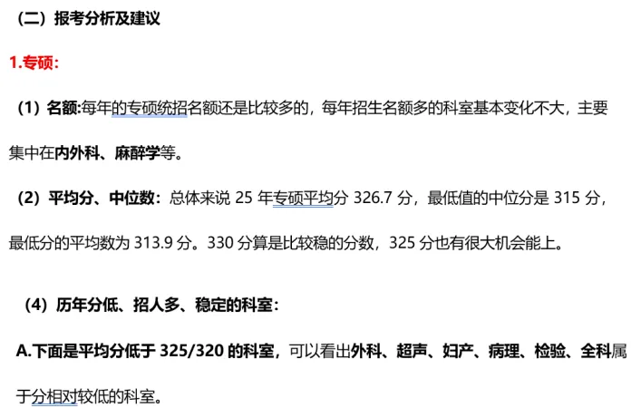 二、报考建议篇:分数线(专硕复试线、科室复试录取情况等)、报考分析及建议(专硕、哪些科室好上岸等)