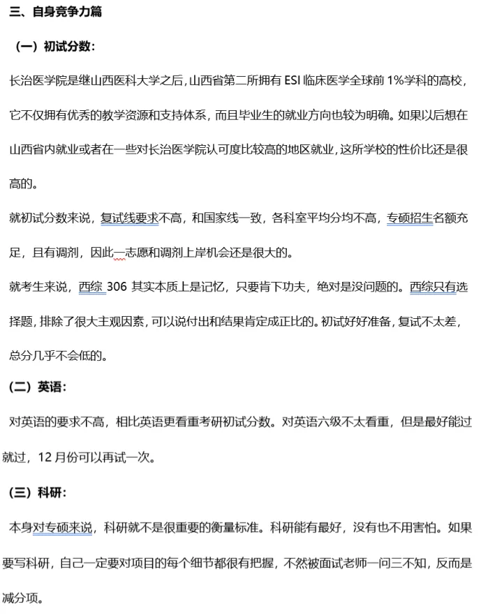 三、自身竞争力篇:报长治医学院的必备条件、长治医学院对英语&科研的要求等