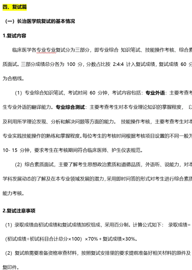 4.长治医学院的复试&调剂,你需要知道: