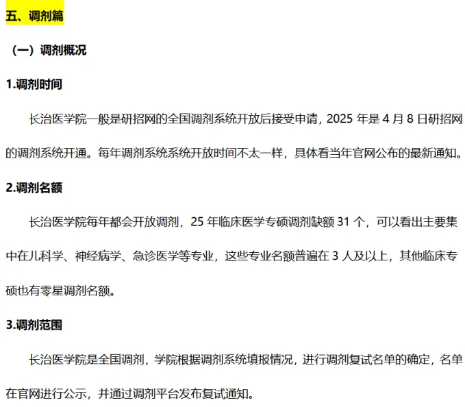五、调剂篇:长治医学院的调剂情况、准备调剂的注意事项