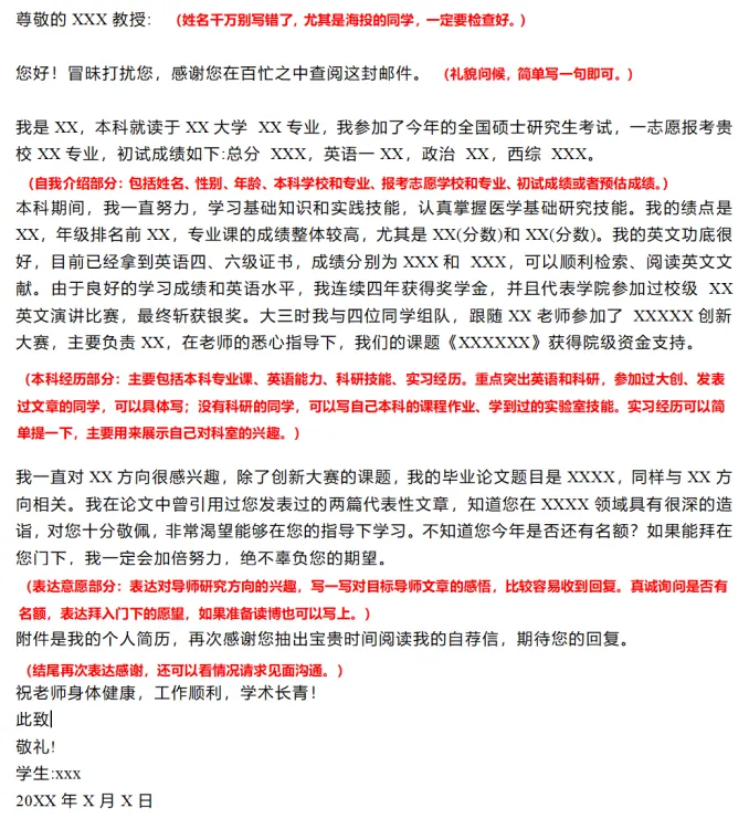 邮件主要是用来联系导师,长治医学院的话一般初试成绩出来后就可以给心仪导师发邮件了。联系导师前注意搜集一下导师信息,最好对目标导师的研究方向、发表论文有所了解之后,再写邮件,邮件里要附上你的简历。