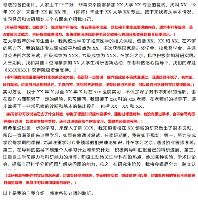 中英文版本都要准备,就算科室只要求中文/英文也准备双份,自我介绍重点准备英文版本,大概3min左右,要非常熟练。中文版本要更加注重信息准确性,注意不要跟简历内容自相矛盾。大家平时练习自我介绍时,可以对着镜子,注意调整自己的表情,不要像背书机器一样,尽量自然大方。